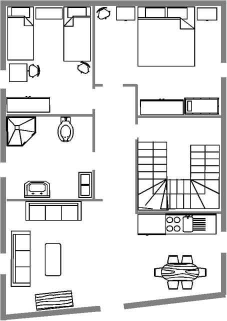 mit je zwei Schlafzimmern.